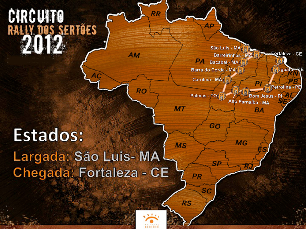 O Rally dos Sertões terá sua largada no dia 18, em São Luís (MA), e chegada no dia 29 em Fortaleza (CE).