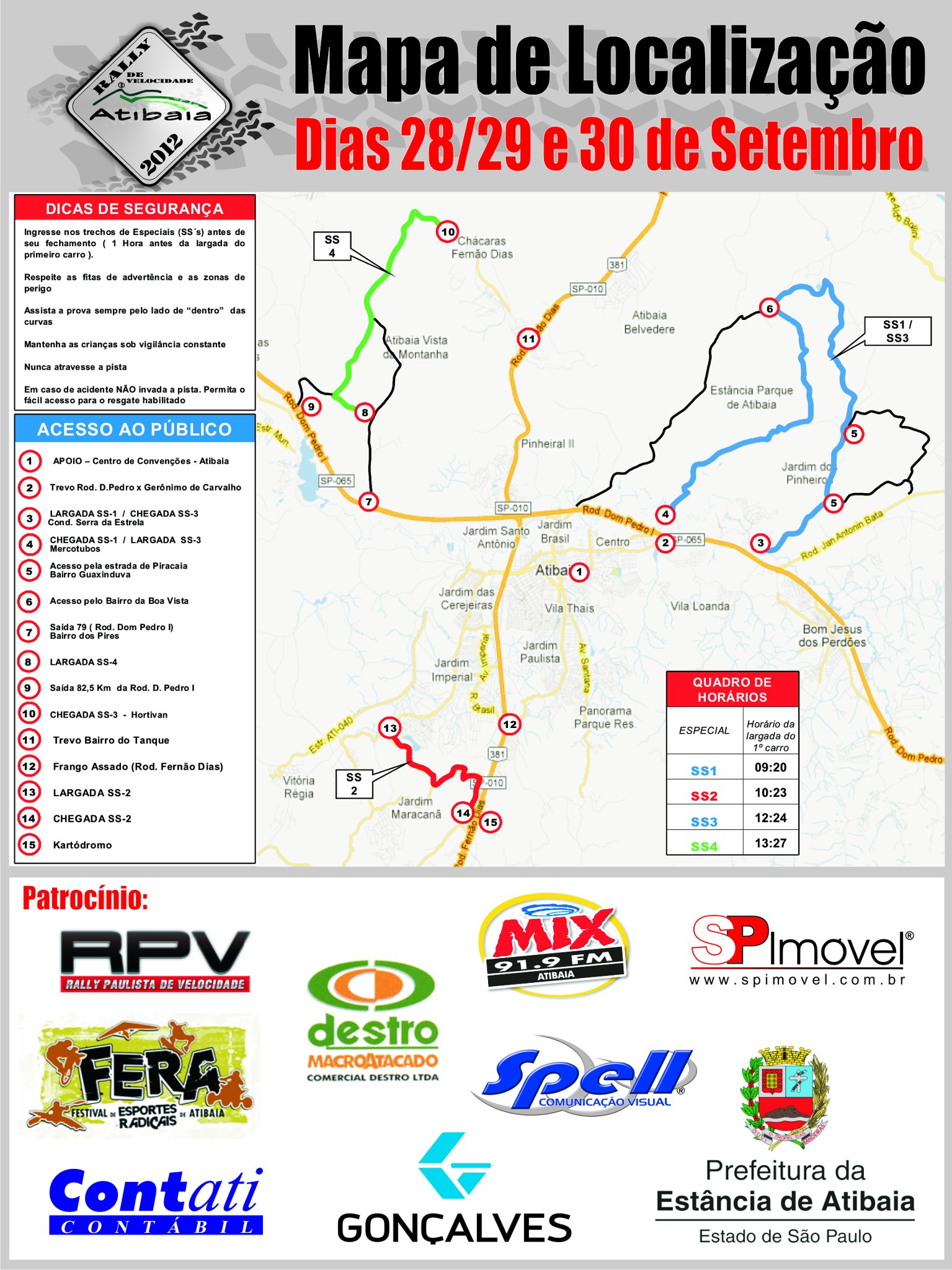 O Rally abre com a super especial (super prime) na noite de sexta-feira, 18 de maio, e segue com mais seis trechos cronometrados no sábado e o super prime à tarde. No domingo serão mais quatro especiais fechando mais de 150 quilômetros de trechos cronometrados. Fico com o sentimento de ter feito alguma coisa boa e colaborado”, salientou.