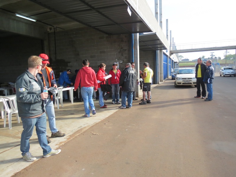 Neste momento as três melhores duplas de cada categoria no acumulado dos dois dias estão recebendo seus troféus. Chove no autódromo.